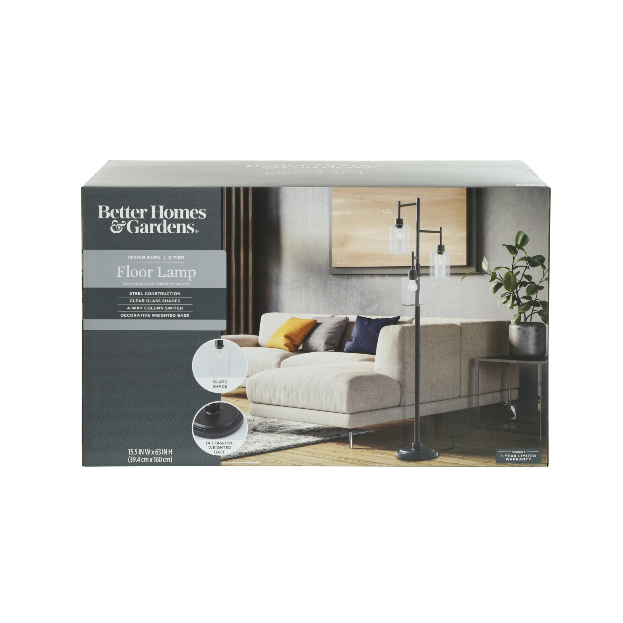 Be the first to review “Better Homes & Gardens 63.5 in 3 Light Contemporary Black Floor Lamp Clear Glass”