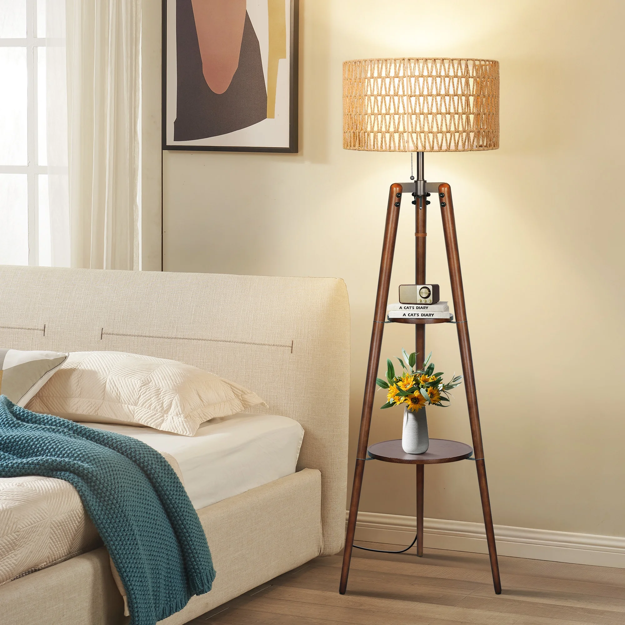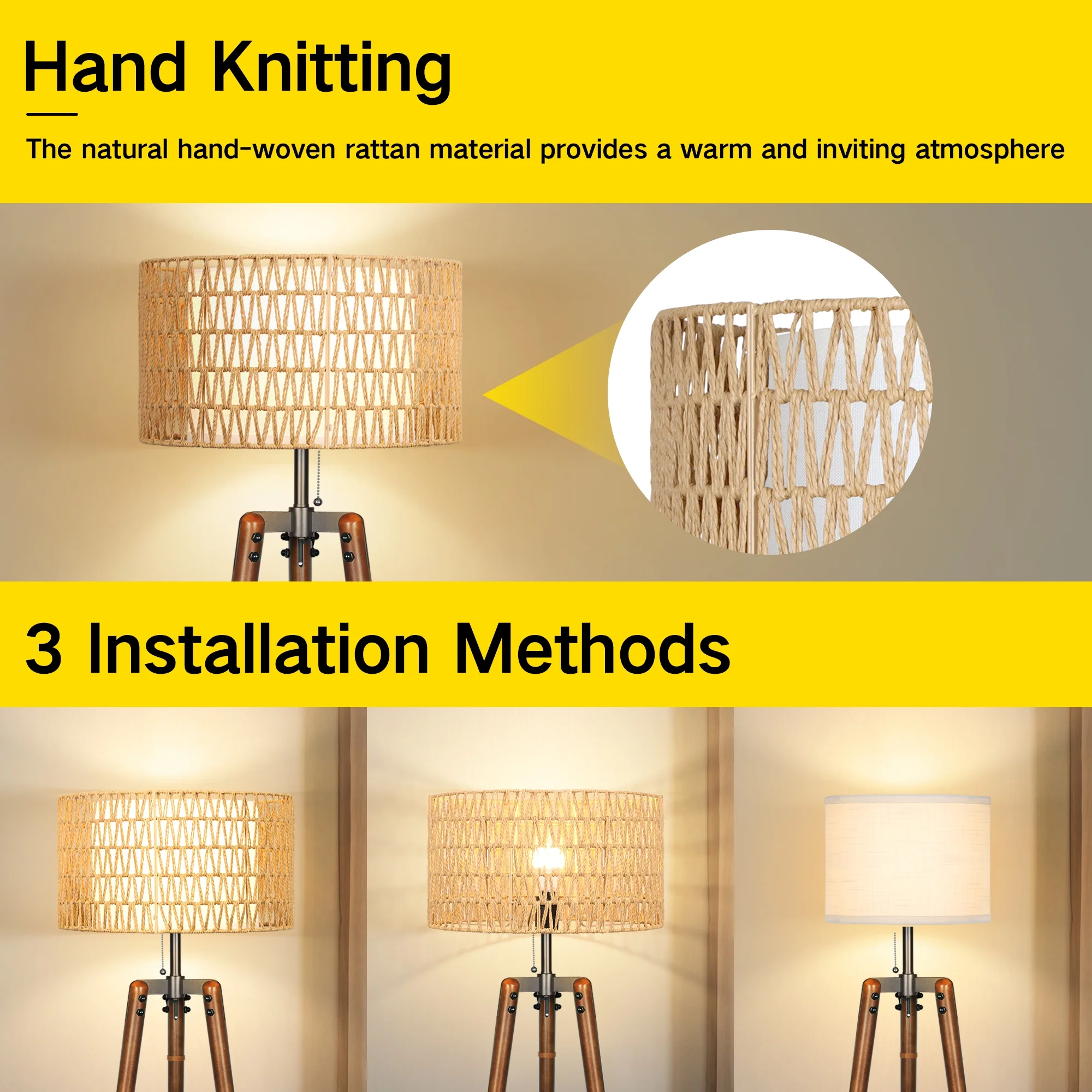 - Double Shades Design: The Bohemian Floor Lamp features hand-woven natural rattan and fabric shades, allowing you to use one or both for a varied look, perfect for bohemian, country, and vintage home styles.